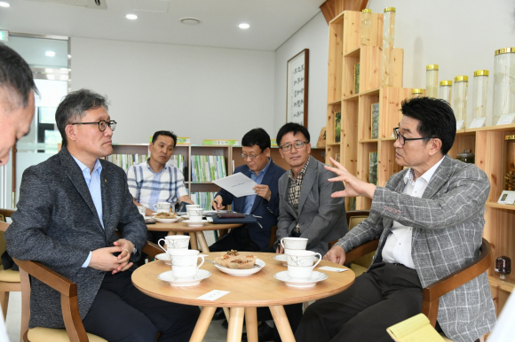 이날 면담은 산림약용자원연구소에서 주최한 산림텃밭 확대 보급방안 현장토론회 참석차 지역을 방문한 김재현 청장을 직접 찾아가 이뤄졌다.
