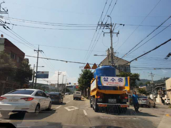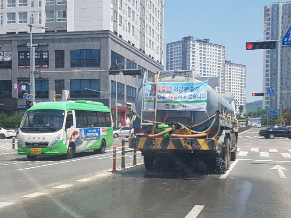 지난 7월12일 폭염경보 발효이후 35℃ 이상 고온이 계속됨에 따라 7월 19일부터 도로면 온도 저감과 소성변형예방을 위한 살수차 운영을 3대에서 6대로 추가 배치 하여 시가지 간선 도로 및 혁신도시· 산업단지 등에 물 뿌리기 작업을 시행중에 있으며,