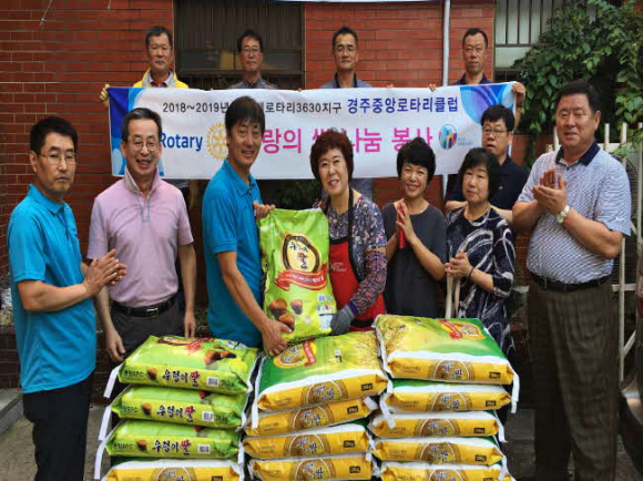 경주중앙로타리클럽(회장 이정환)에서는 지난 21일 무료급식소 ‘이웃집’을 방문해 사랑의 쌀 26포를 전달했다.