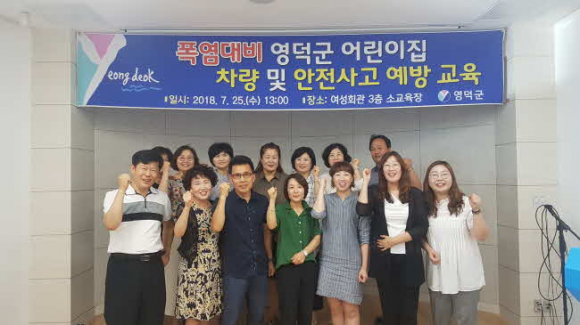 영덕군은 지난 25일 여성회관에서 관내 모든 어린이집 13개소(공립 5, 민간 8) 원장을 대상으로 폭염대비 어린이집 차량 및 안전사고 예방교육을 실시했다.