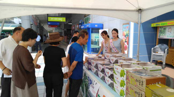 김천시(시장 김충섭)는 27일(금)부터 8월 15일(수)까지 20일 동안 한국도로공사 경부고속도로 김천휴게소(상행)에서 김천포도․자두 홍보․판촉행사를 실시할 예정이다.