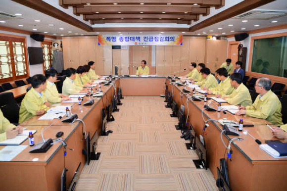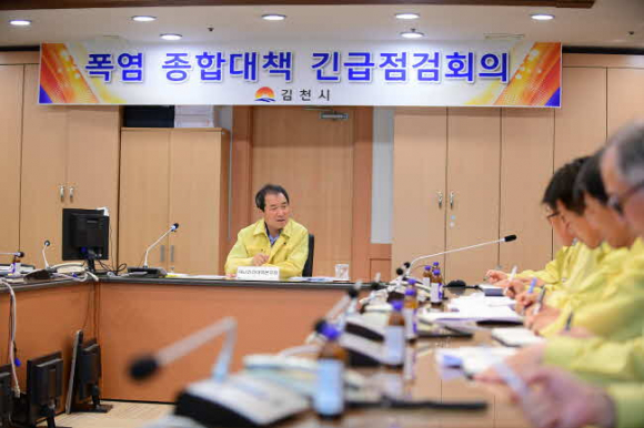 김충섭 김천시장은 긴급대책회의를 통해 현장 중심의 예방활동을 펼쳐서 폭염에 추가적 피해가 발생하지 않도록 재정 인력 등 모든 행정력을 총 동원하여 피해를 예방 할 것을 지시했으며, 곧 바로 취약 계층이 많은 경로당 및 마을 회관을 방문하여 시설 사용에 불편함이 없는지 직접 현장 점검에 나섰다.