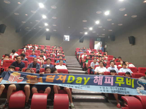 영천시(시장 최기문)는 26일 ~ 27일 4회에 걸쳐 영천공설시장 별빛영화관에서 지역 내 청소년 동아리 300여명을 대상으로 영화관람행사 ‘컬처Day 해피 무비’를 실시했다.