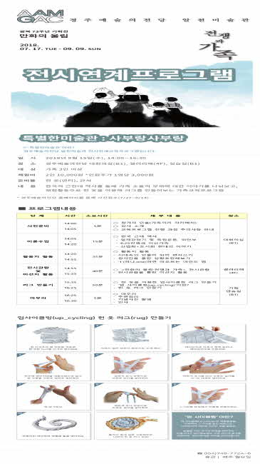 또 만화전과 연계된 프로그램으로 가족들이 함께 참여할 수 있는 특별한미술관 ‘사부랑사부랑’이 8월 15일(수) 오후 2시에 운영된다. 이 프로그램은 한국 근대화 역사를 통해 가족 소통의 부재를 이야기하고 헌옷으로 러그를 만드는 시간을 가진다. 프로그램에 참여하려면 8월 14일까지 홈페이지를 통해 접수하면 된다.