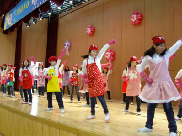 공연마당에서는 경북국악협회의 부채춤 초청공연을 시작으로 1학년 난타, 2학년 사랑의 트위스트, 3학년 소고춤, 4학년 둘리댄스, 5학년 태권무 및 방송댄스, 6학년 수화공연과 음악줄넘기 시범단의 음악줄넘기 공연이 펼쳐졌다. 46명 학부모합창단의 멋진 환상의 하모니로 공연의 마지막을 장식했다.