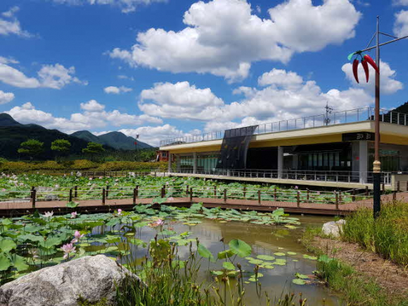 이 아름다운 연꽃을 가까이서 보고 즐길 수 있도록 연꽃테마파크에는 30~40분 정도 산책하기 좋은 3km 길이의 데크 탐방로를 비롯해 연꽃 가운데에서 차를 마시며 연꽃의 운치를 감상할 수 있는 카페와 체험관 등 편의시설을 갖추고 있다.