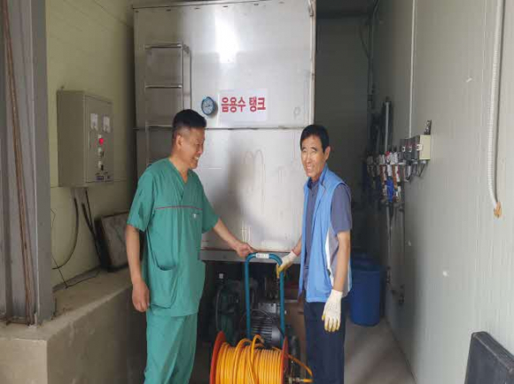 닭은 체온이 높고 땀샘이 발달하지 않아 다른 가축에 비해 체온 조절이 어렵다. 온도와 습도가 높은 여름에는 고온 스트레스가 커 사료 섭취율이 적어 체중이 줄고 폐사율이 증가하는 피해가 발생한다. 닭의 폐사를 줄이기 위해 올해부터 농촌진흥청에서 개발한 ‘계사용 냉·음용수 급수시스템’을 안정면 오계리 정승대 농장 외 2개소에 시범 설치 운영하고 있다.