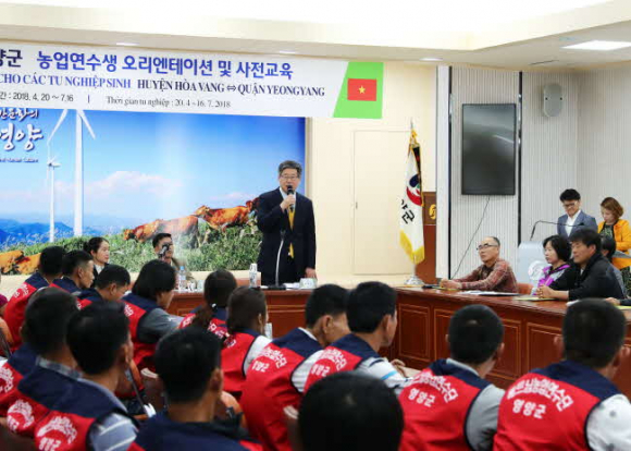 2018년도 하반기 외국인계절근로자 사업은 45농가 112명이 참여하며 영양군과 베트남 화방군의 엄격한 선발에 의해 사전교육과 연수를 거쳐 8월 7일 입국하여 영양군 문화체육센터에서 오리엔테이션과 농가주 상견례 및 농작업 요령, 한국문화 이해 등 교육을 받고 참여 농가로 배치되어 고추 및 과일, 엽채류 수확 등 본격적인 농작업에 임하게 된다.