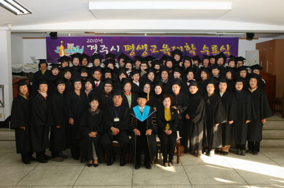 경주시 평생학습문화센터(소장 박현숙)에서는「2010년 경주시 평생교육대학」수료식을 2010. 11. 30(화) 오후2시 평생학습문화센터 큰어울마당에서 가졌다.