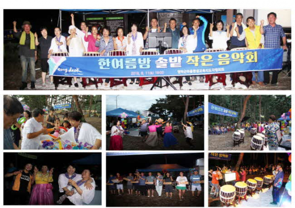 이날 행사는 우리 지역의 명소인 오천솔밭을 찾는 피서객과 인근 지역 주민들에게 잠시나마 무더위를 잊고 즐기는 여름밤을 보낼 수 있게 준비한 것으로 마을평생교육지도자연합회원들이 그동안 열심히 배운 섹소폰, 허슬댄스, 아코디언, 모듬북 등의 다채로운 공연으로 꾸며졌다.