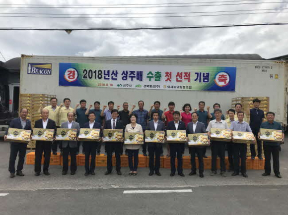 외서농협 대미배수출단지(조합장 지종락)는 8월 16일 오후 2시 외서농협 농산물산지 유통센터에서 황천모 상주시장, 지역구 도‧시의원 등 관계자 30여명이 참석한 가운데 상주 원황배의 미국 첫 수출 기념식을 가졌다.
