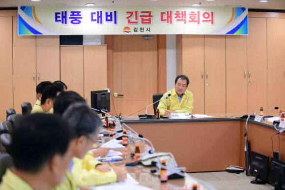 김천시(시장 김충섭)는 제19호 태풍 ‘솔릭’이 한반도를 향해 북상함에 따라 21일 김충섭 김천시장 주관으로 재난협업 부서장들이 참석한 가운데 태풍대비 긴급대책회의를 열었다.