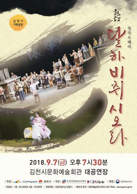 김천시문화예술회관(관장 김금숙)에서는 시민들의 다양한 문화 활동을 지원하기 위하여 기획공연 ‘창작오페라 <달하, 비취시오라>’를 오는 9월 7일(금) 오후 7시 30분 대공연장에서 그 막을 올린다.