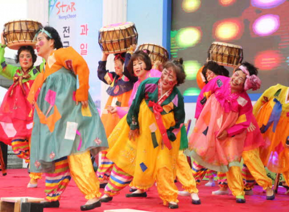 또한 영천만이 가지고 있는 문화예술공연으로 아리랑태무시범단 공연, 청통면 생활개선회의 라인댄스와 고경면 생활개선회의 품바공연 등 다양한 볼거리를 제공해 방문객들의 흥을 돋웠다.
