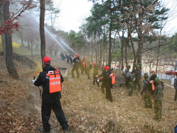 경주시는 12월8일 충효동 송화산 자락 흥무근린공원에서 산불초동진화 대응능력을 높이기 위해 경주소방서, 경찰, 군부대 등 500여명의 인력과 합동으로 산불진화훈련을 가졌다.