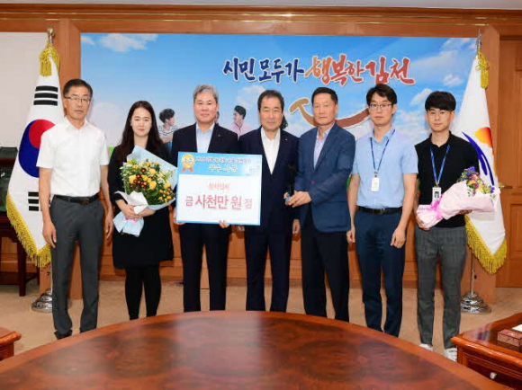 김천시(시장 김충섭)는 31일 안동 그랜드호텔 그랜드볼룸에서 열린 경북 농식품 수출촉진대회에서 ‘2018년 경북 농식품수출정책 우수기관으로 선정’되어 상사업비 4천만원과 시상금 2백만원을 수상하는 쾌거를 이뤘다.