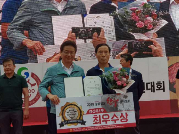영천시(시장 최기문)는 지난 6일 경산시 하양읍 대조리운동장에서 열린 2018년 경북한우경진대회에서 경산우 부문 최우수상을 수상하는 영예를 안았다.