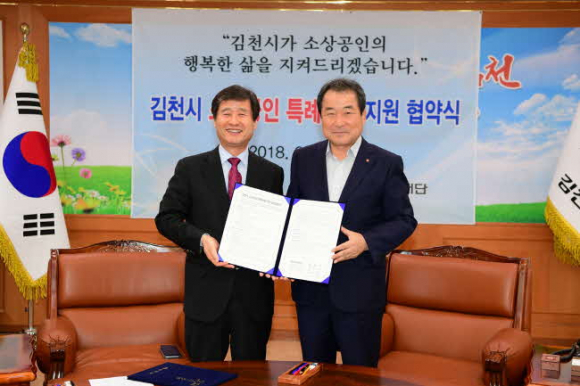 김천시 특례보증이란 신용등급이 낮고 영세한 소상공인 및 전통시장 상인들이 소액의 경영자금을 필요로 할 때 김천시와 경북신용보증재단이 협약하여 주요 금융권 신용대출에 대해 저리의 융자를 받을 수 있도록 보증 해주는 제도로 사업장 당 최대 2천만원까지 가능하다. 덧붙여 2년간 3%의 이자차액을 보전해준다. 10일 김천시청에서 『김천시 소상공인 특례보증 지원』 제도 확대 시행을 위한 업무협약식을 김충섭 김천시장, 박진우 경북신용보증재단 이사장, 김한주 농협은행 김천지부장, 김명인 국민은행 김천지점장, 박영효 대구은행 김천지점장, 이석진 신한은행 김천금융센터장이 참석한 가운데 개최됐다.