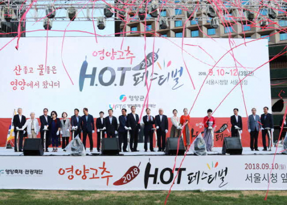 경북 영양군(군수 오도창)이 주최하는 「2018 영양고추 H.O.T Festival」이「산좋고 물좋은 영양에서 왔니더!」라는 주제로 9월 10일(월)부터 9월 12일(수)까지 3일 간 서울광장에서 열리고 있다.