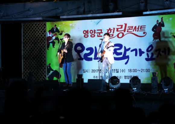 영양군(군수 오도창)은 9월16일(일) 오후 7시 영양군청 잔디광장 특설무대에서 가을의 시작을 알리는 힐링콘서트 오락가락 가요제 및 음악회를 개최한다.