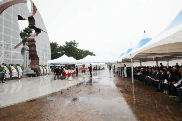 장사상륙작전 전승기념공원 건립추진위원회 및 장사상륙참전 유격동지회에서 공동 주관한 이번 행사에는 빗줄기가 쏟아지는 굳은 날씨에도 불구하고 이희진 영덕군수, 김은희 영덕군의회 의장 및 참전영웅으로 생존해 계신 장사유격동지회원과 유가족 60여명, 이원경 경상북도 복지건강국장, 정재학 50사단장, 김대훈 경북남부보훈지청장 등 주요인사와 영덕군 보훈단체회원, 주민ㆍ군장병 등 500여 명이 참석하였고, “장사리 915” 영화를 제작준비중인 김태훈 감독과 제작진이 참석하여 자리를 빛냈다.