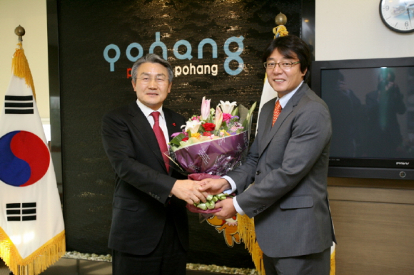 황선홍 포항스틸러스 감독, 포항시장 방문