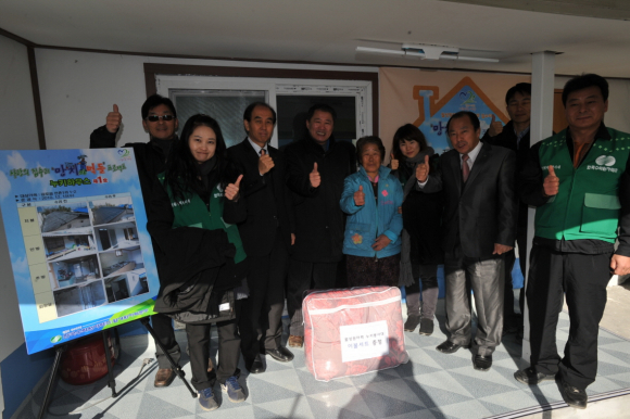 이날 준공식에 참석한 관계자들은 제1호 누키하우스에 ‘망치와 벽돌’ 공식 로고가 새겨진 현판을 달며 준공을 축하하고, 장 모 할머니가 겨울을 더욱 따뜻하게 지낼 수 있도록 겨울용 침구류도 전달했다.