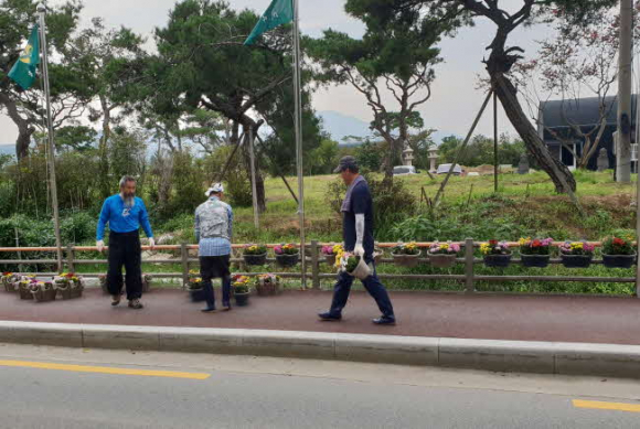 이번 정비활동은 주민센터 건너의 정비되지 않은 가로수 화단에 잡초와 덤불을 제거하고 송엽국화 4천 본을 식재했다.
