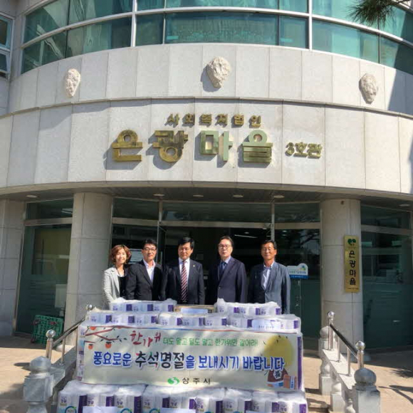 이를 위해 상주시 관내 사회복지시설 27개소에 총 11,699천원 상당의 생활필수품을 전달했다. 또 기초생활수급자와 어려운 차상위계층 199세대에게는 경상북도공동모금회에 추천해 1가구당 7만원씩 총 13,930천원을 지급했다.