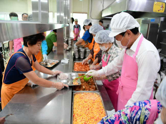 김충섭 김천시장은 지난 13일 “공양방” 배식 봉사에 이어 19일에는 바쁜 일정 중에 무료급식소 야고버의집을 찾아 배식 봉사활동을 했다. 김충섭 시장은 손수 배식을 하고 식사를 나르면서 어르신들에게 많이 드시라고 권하고, 부족한 음식이나 불편함이 없는지 살폈다.
