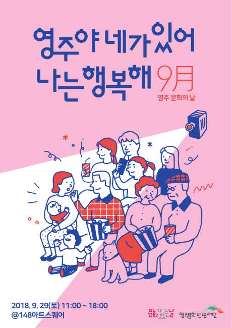 경북 영주시는 오는 29일(토) 오전 11시부터 148아트스퀘어(경북전문대학교 내)에서 ‘2018 문화가 있는 날 지역문화 콘텐츠 특성화 사업’의 네 번째 행사 ‘영주야, 네가 있어 나는 행복해’를 열고 가족영화 상영, 길거리 공연 등 다양한 프로그램을 선보인다.