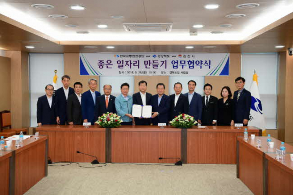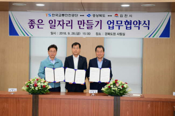 김천시(시장 김충섭)는 9월 28일 경북도청 회의실에서 한국교통안전공단(이사장 권병윤), 경상북도(도지사 이철우)와 좋은 일자리 만들기 업무 협약을 체결했다.