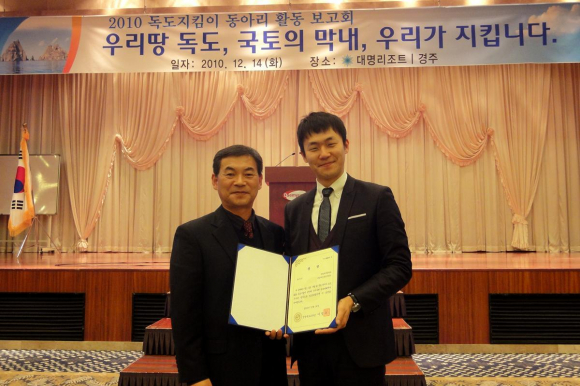|  | | | ⓒ GBN 경북방송 | | 이번 보고회는 경북교육청에서 도내 초, 중, 고등학교에서 운영되는 독도지킴이 동아리를 대상으로 2010년 운영사례 공모전을 실시하여 각 학교 급별로 최우수 1교, 우수 2교, 장려 3교 등 총 18개 동아리에 대한 시상을 하는 자리였다.