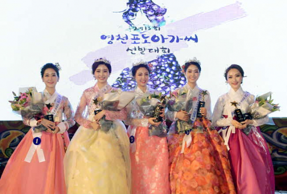 영천포도아가씨 선발대회는 올해 13회째로 명성있는 대회로서 최기문 영천시장, 박종운 영천시의회 의장 등 지역기관단체장을 비롯해 3,000여명의 시민 및 관광객이 참석해 성황리에 열렸다.