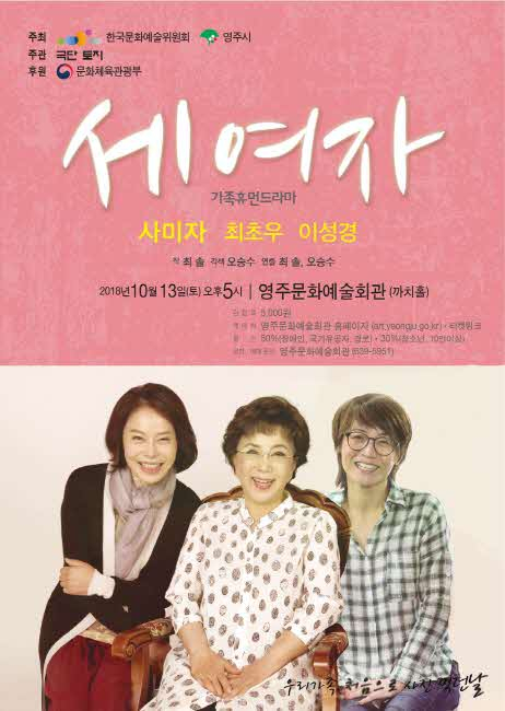 영주시는 오는 13일 토요일 오후5시 영주문화예술회관 까치홀에서 연극 ‘세여자’ 공연을 개최한다.