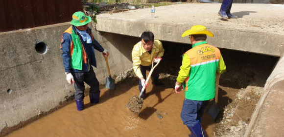또, 청송군자율방재단 등 50여명의 청송군 자원봉사자들과 함께 피해 현장을 찾아 복구 작업도 도왔다. 청송군 자원봉사자들은 청송군에서 이동세탁 차량 등 복구 장비를 준비해 침수 피해를 본 상가와 가정집의 이불 빨래 등 생활용품 세척과 물과 함께 건물 안으로 밀려들어 온 진흙 등 오물 제거 봉사활동을 펼쳤다.