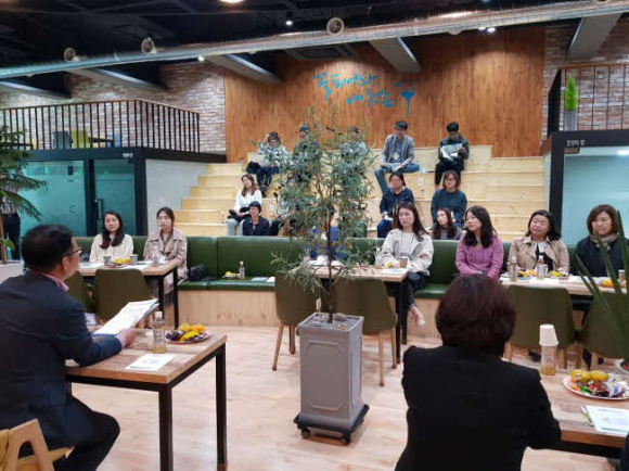영천시(시장 최기문)는 지난 12일 상공회의소 청춘공감카페에서 3~40대 공립 어린이집 학부모 및 시청 직원 20여 명이 참석한 가운데 저출산 극복을 주제로 해당 연령층과 소통하고 공감하는 ‘공감, 소통의 창’ 행사를 개최했다. 오는 19일에도 같은 장소에서 사립 어린이집 학부모를 대상으로 진행할 계획이다.