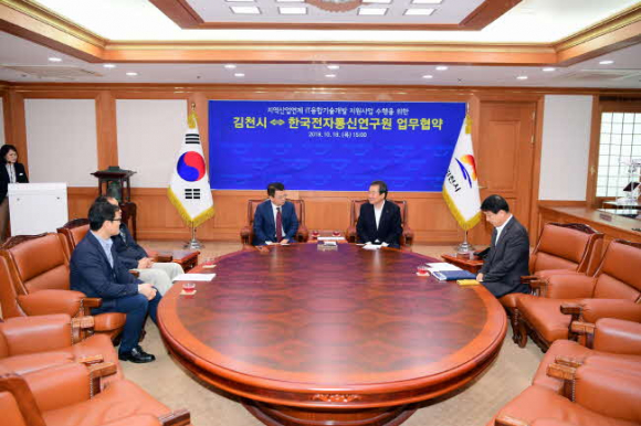 지역산업연계 IT융합기술개발지원사업 수행을 위한 김천시⇔한국전자통신연구원 협약