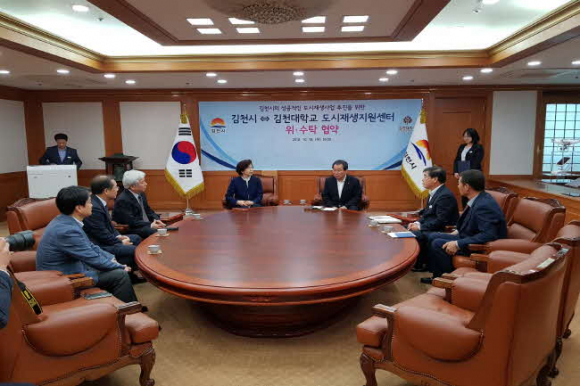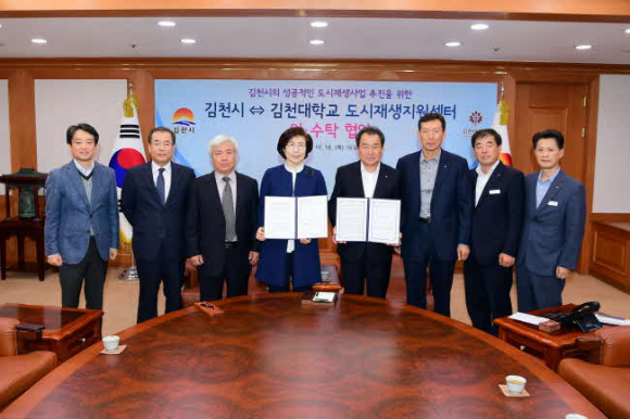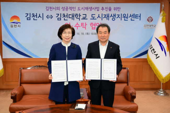 김천시(시장 김충섭)는 10월 18일 김천시청에서 김천대학교(총장 윤옥현)와 김천시 도시재생지원센터 위수탁 협약을 체결 했다.