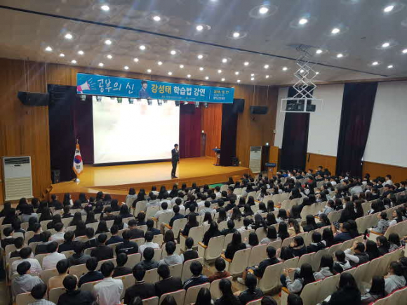 이번 특강은 ‘공부의 신 강성태 학습법’ 이라는 타이틀 아래 꾸 준한 공부를 위한 동기 부여와 학생들의 꿈과 진로 선택에 대한 자신만의 비법 전달로 이날 참석한 관내 학생과 학부모 400명에게 큰 호응을 얻었다.