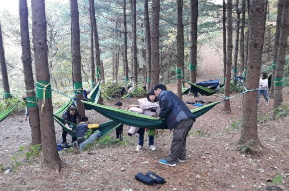 활동 프로그램으로는 첫날 ‘숲을 거닐다’로 데크로드를 따라서 숲길걷기, 향기를 담다, 비누만들기, 건강치유장비체험 등을 진행했다. 둘째 날은 카프라(내가 쌓는 그 집), 가족 간의 소통시간 등을 갖는다.