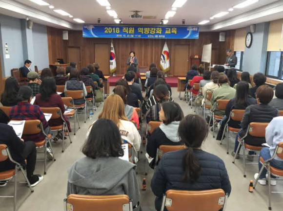 김천시(시장 김충섭)는 지난 22일 보건소 3층 회의실에서 공무직 및 기간제 근로자들의 역량강화를 위해 친절 및 직무교육을 실시했다.