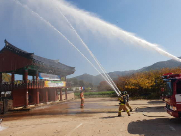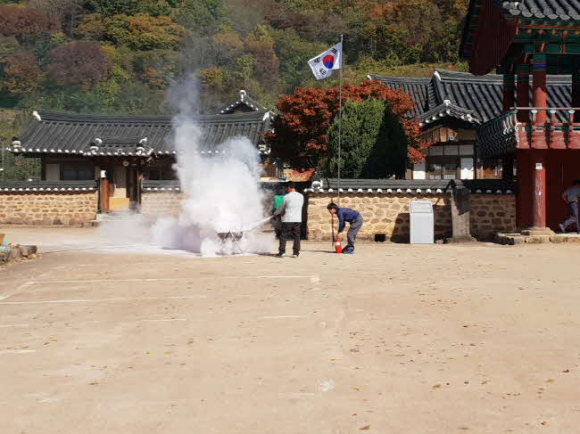 이번 소방훈련은 향교 내에서 원인 미상의 화재가 발생하여 강한 바람에 의해 명륜당 및 인근 야산으로 확대되어 피해가 예상되는 상황을 가정해 화재 발생 시 자위소방대 초기 대응, 인명구조 및 화재진압, 유관기관 상호협조체제 구축 등을 중점으로 실시했다.