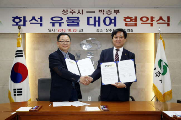 상주시(시장 황천모)와 박종부는 2018. 10. 26.(금) 화석 유물 대여 협약을 체결했다.