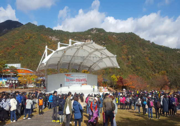 요즘 단풍철을 맞아 성주봉자연휴양림을 찾는 발길이 부쩍 늘어나고 있다. 성주봉의 아름다운 단풍과 이벤트 공연까지 함께 즐길 수 있는 야외공연장이 인기를 끌며 성주봉을 찾는 휴양객들은 깊어가는 가을의 추억을 남기며 아쉬움을 달래고 있다.
