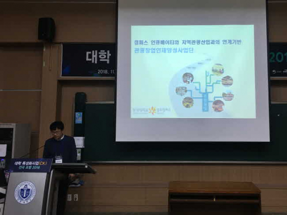 동국대학교 경주캠퍼스 호텔관광경영학부 관광창업인재양성사업단은 우수사례 사업단으로 선정되어 “지역기반 인큐베이팅 교육 모델- 강의모델 다양화를 통한 혁신적인 교육과정 운영”을 주제로 사업단만의 특성화된 교육과정 운영 사례를 발표하였다.