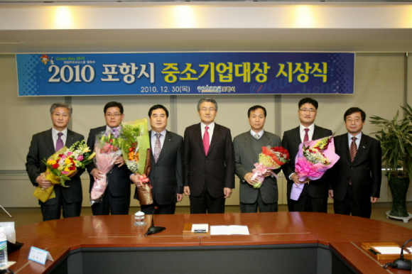 포항시가 30일 시청 중회실에서 실시한 2010 중소기업 대상 시상식에서 경영혁신 부문에 동화식품(주), 수출증대 부문에는 제일산기(주), 노사화합 부문에는 (주)아이랙스, 일자리창출 분야에는 (주)대신철강, (주)범스틸이 각각 선정됐다.