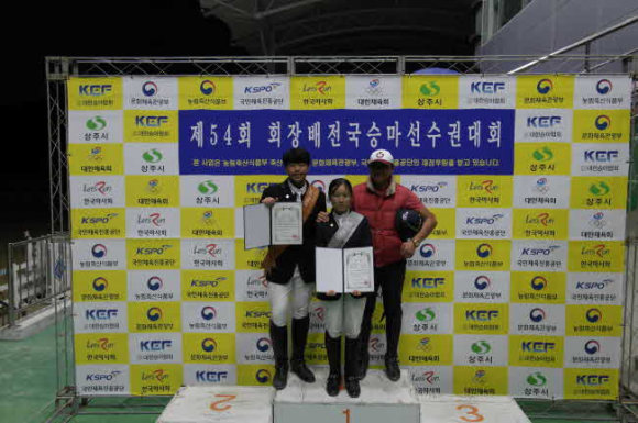 또 상주국제승마장 소속의 회원들도 선전했다. 마장마술 D클래스 초.중등부에서 이동영(형곡중학교)선수가 60.862%의 성적으로 1위와 통합1위를, 장애물 G클래스(국산마) 통합부에서 이승민(현일중학교) 선수가 3위에 입상했다.