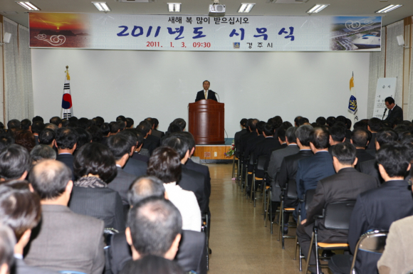 최양식 경주시장은 3일 시무식 신년 메시지를 통해 30만 경주시민에게 2011년은 「미래 희망의 도시」로서 사람과 산업이 모여드는 중요한 전환점의 한해가 되기 위해 항상 어려움의 선봉에 서왔던 경주시민들의 위대한 정신을 받들어 「경주의 새 시대 개척」을 시민들과 함께 하겠다는 의지를 밝혔다.