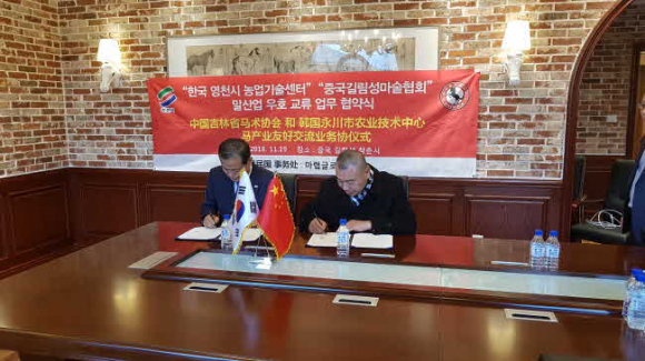 영천시 농업기술센터는 지난 19일 중국 길림성 체육국에서 중국 길림성 마술협회와 업무협약(MOU)식을 체결했다.